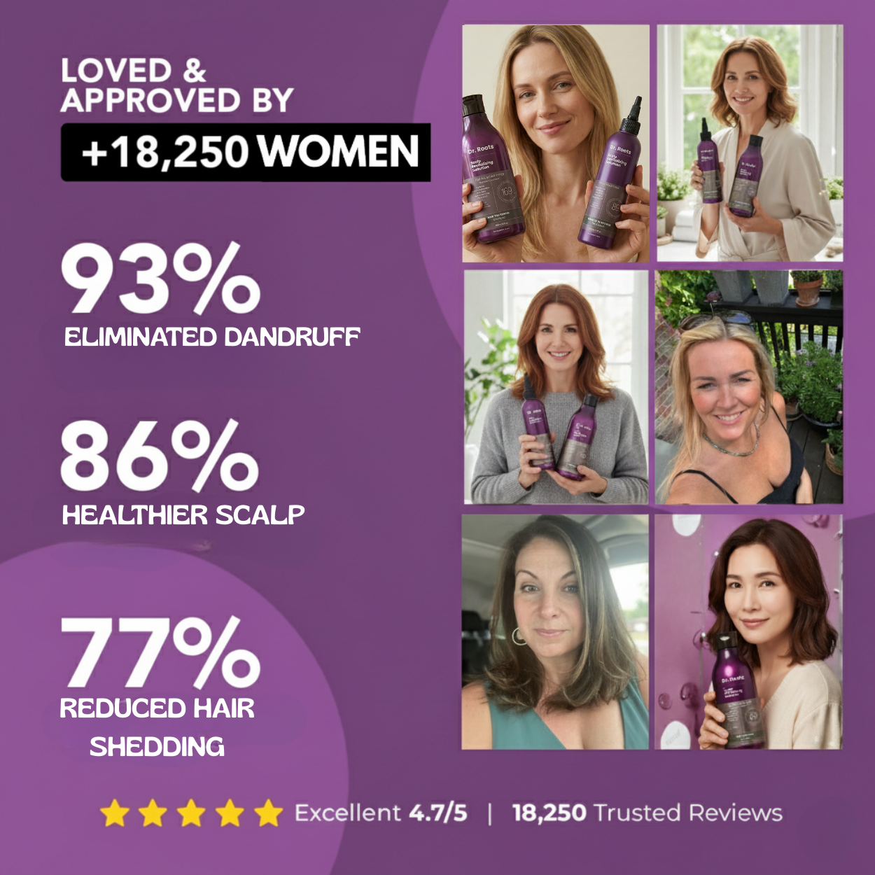 Most products seem made for twenty-somethings. My hair started thinning after my second child and got worse during perimenopause. Dr. Roots is the first line that felt like it was made for me. My scalp feels balanced again and my hair doesn’t break when I brush it anymore.