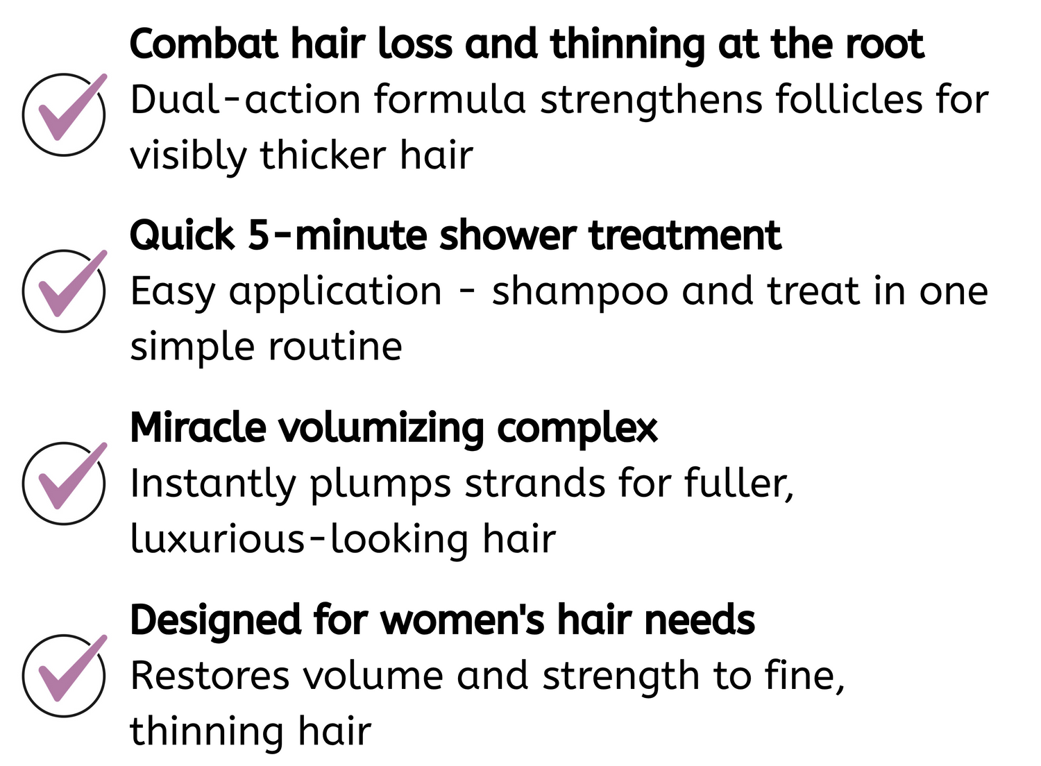 This set includes the Hair Thickening Shampoo and Miracle In-Shower Scalp Treatment. Use together 2-3 times weekly on wet hair.
